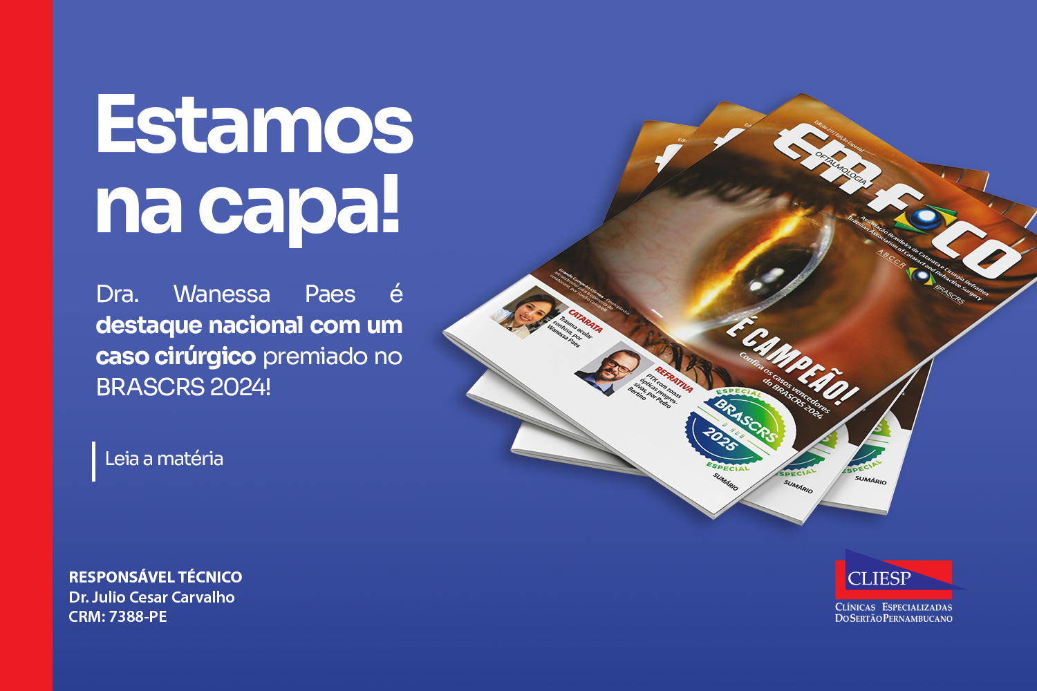 Dra. Wanessa Paes é destaque na nova edição da revista Oftalmologia em Foco, com um relato de caso premiado como grande campeão na categoria Catarata durante o último Congresso BRASCRS 2024.